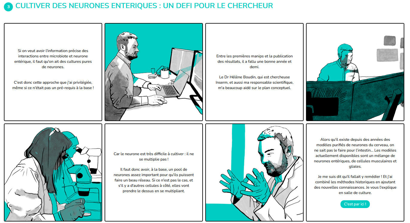 A la manière d'un photoreportage immersif, nous suivons le Dr Martial Caillaud, chercheur à l’INSERM/TENS, le premier à avoir développé un modèle purifié de neurones entériques. Vous savez ? Les neurones que nous avons dans l’intestin.