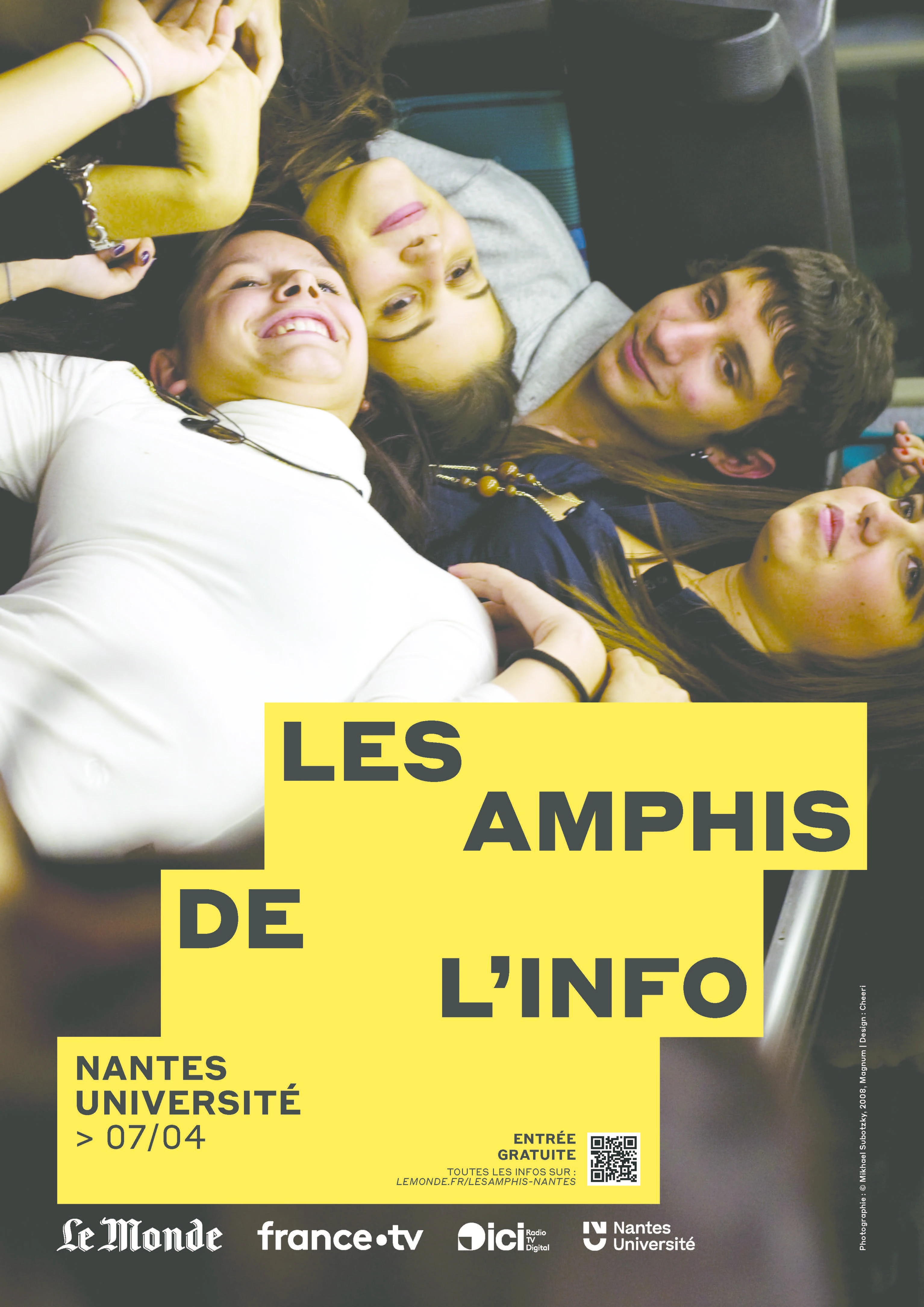 Mardi 7 avril, des journalistes du Monde, de France Télévisions et du réseau de radios Ici échangeront avec le public nantais à l’occasion de la deuxième étape de ce cycle de rencontres gratuites, destinées en priorité à un public de jeunes adultes. Un temps fort dédié au rapport à l’information, organisé en partenariat avec Nantes Université.