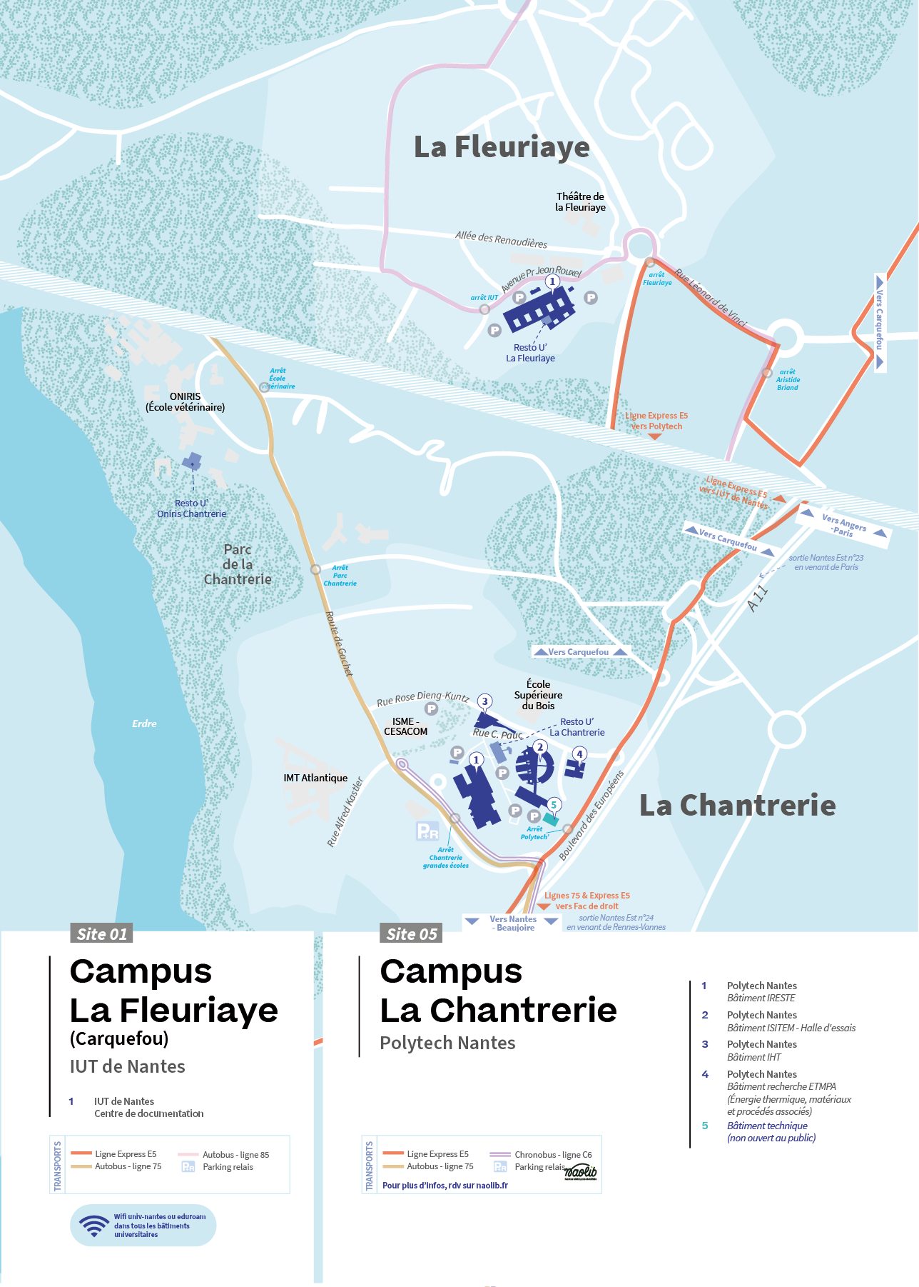 Plans détaillés des campus sur Nantes